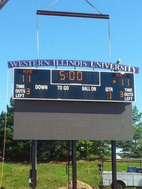 I do think the board turned out nice but is definitely smaller than expected. Most places now are getting rid of the scoreboard and using a straight video board which can display a scoreboard and between plays then the entire board can be used for replays or promos. Just was thinking, but I am not sure if it does this, the signage they just added looks pretty similar to the items they have been placing around school like on the grand entry way which light up and look amazing! How awesome would it be if during night games the Western Illinois University lights up!